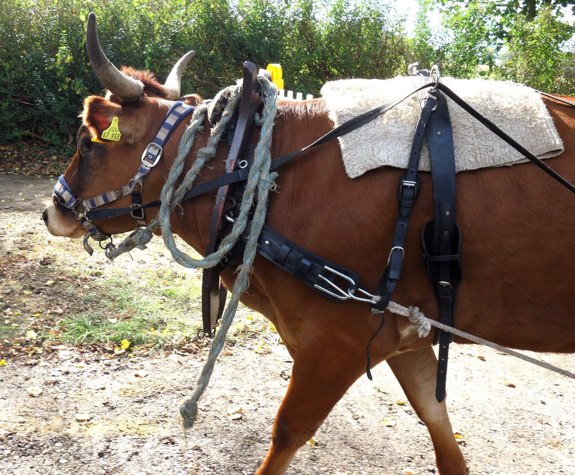 Im Oktober 2025 krieg ich wieder Einzelunterricht. Ich soll das Fahren von hinten mit den langen Zügeln lernen. Das wär sooo schwer ja nicht, helfen mir doch die Stimmkommandos. Aber ich muß vor allen anderen laufen, oh weh! Ich bin für den Weg verantwortlich... Die Zweibeiner haben glatt verpennt, daß mir das 3Polster-Kumt viel zu tief um den Hals baumelt, die Seitenpolster sind genau da wo man sie nicht haben will: auf meinem Schultergelenk. Und wenn sie die Leinen nicht durch die Leinenringe am Kammdeckel ziehen würden, müßte ich nicht den Kopf so weit hoch nehmen. Schulstunde für alle!