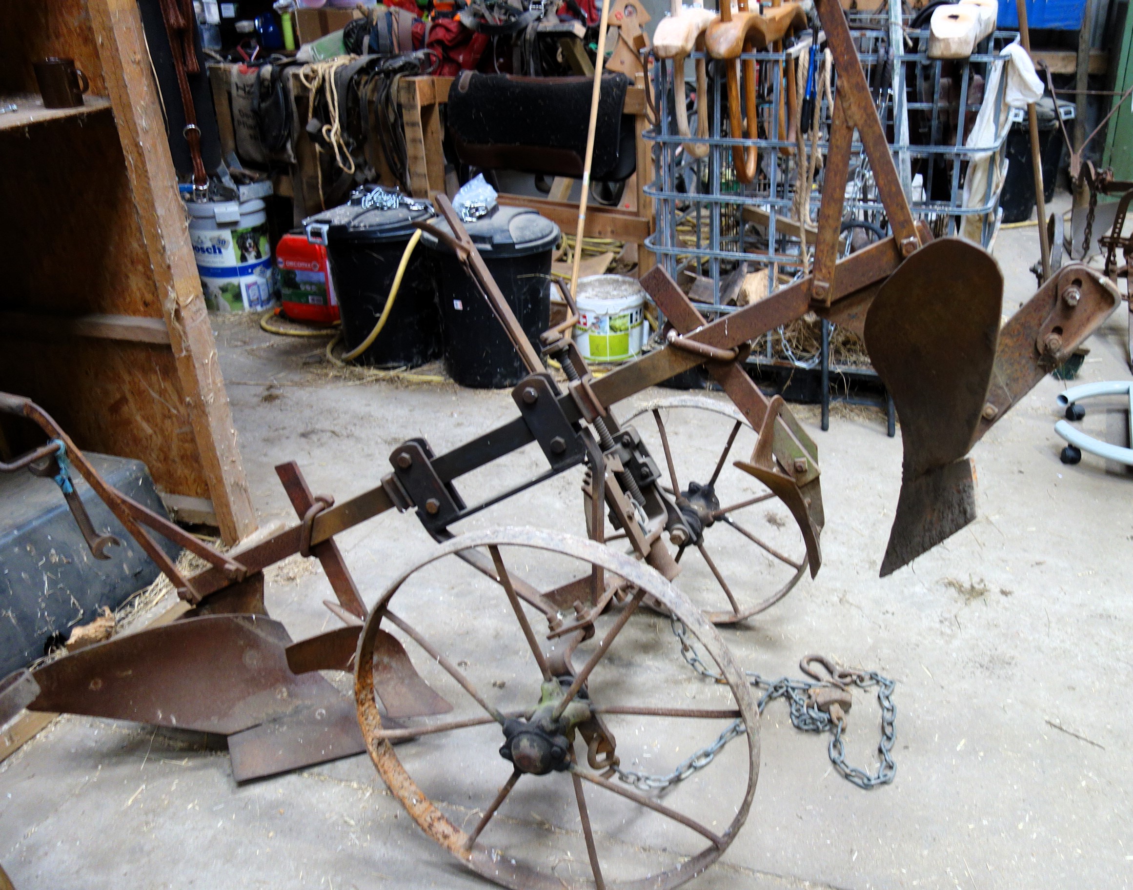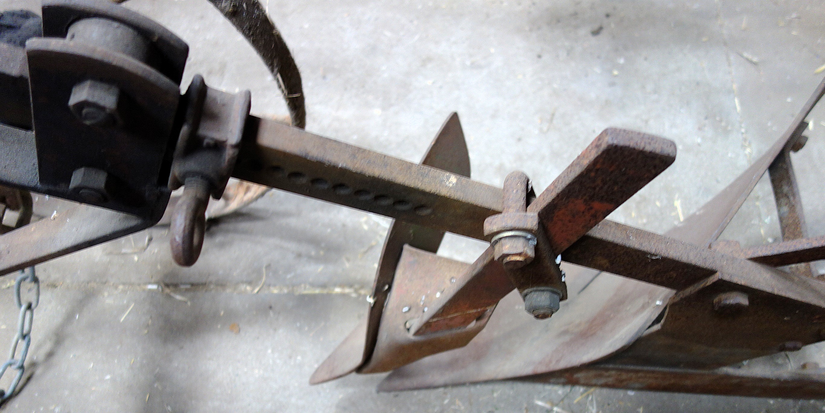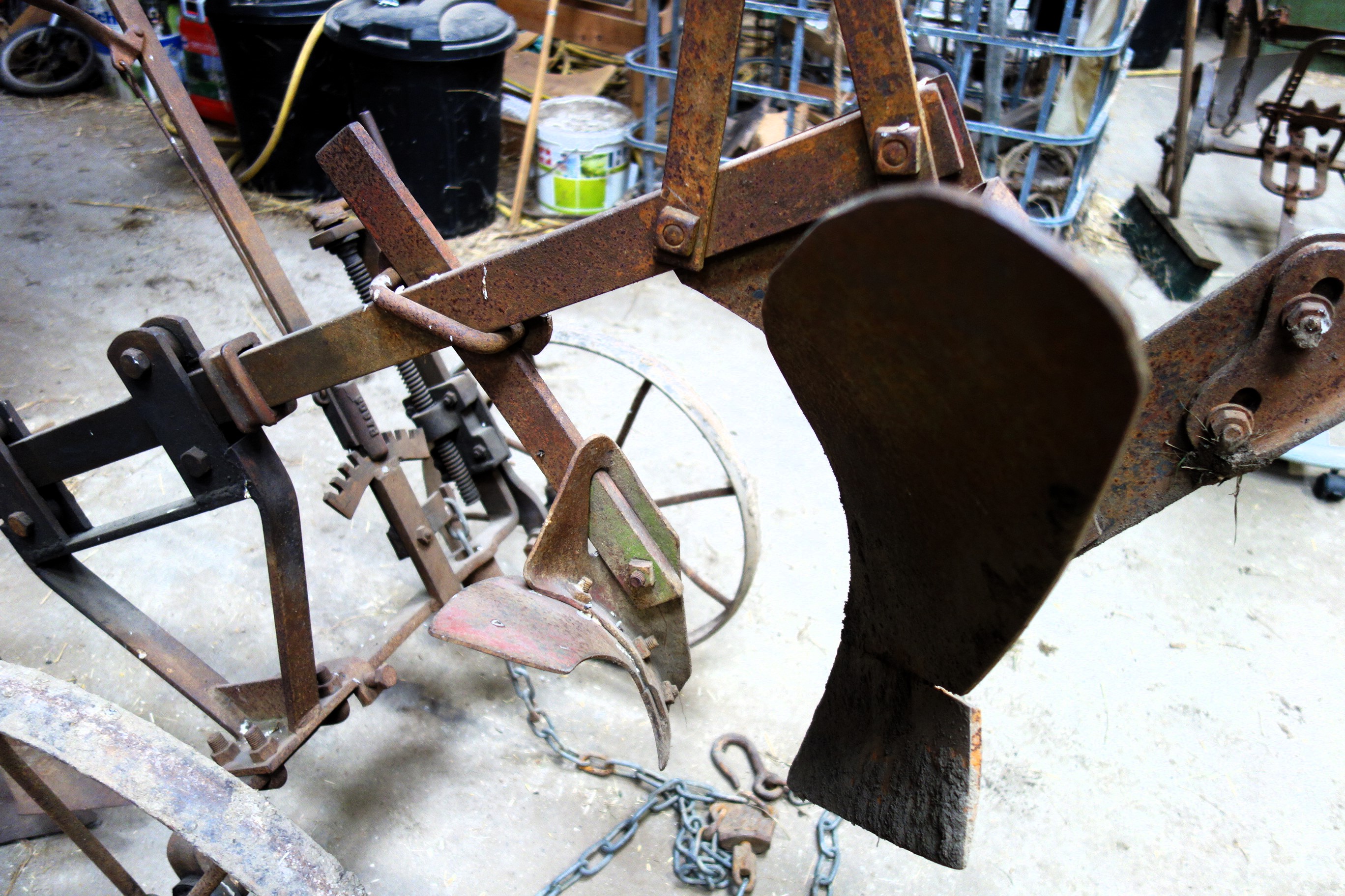 Dieser einscharige Kipppflug steht im Freilichtlabor Lauresham, Lorsch, Hessen.
