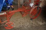Der Balken muß außen etwas in Richtung der Fahrt zeigen (Voreilung haben), das läßt sich einstellen. Der Abstand von Mähschuh innen bis zur Deichselmitte beträgt 44 cm. Der McCormick 8 hat einen 1,37m bzw. 1,5m Mähbalken. Das Antriebsrad ist links und treibt über ein Zahnrad das Getriebe an.