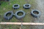 Auf die Schnelle aus 5 alten Reifen, einem Holzbalken, übrigen Kettengliedern und Ringschrauben zusammengebaut dient die Schleppe vor allem im Frühjahr zum Maulwurfshaufen plätten auf den Wiesen; das restliche Jahr nimmt sie kaum Platz weg, weil sie zerlegt in der Ecke steht. Beim Bau haben wir allerdings am Reifengummi sowohl Flex als auch Trennscheibe zerstört.