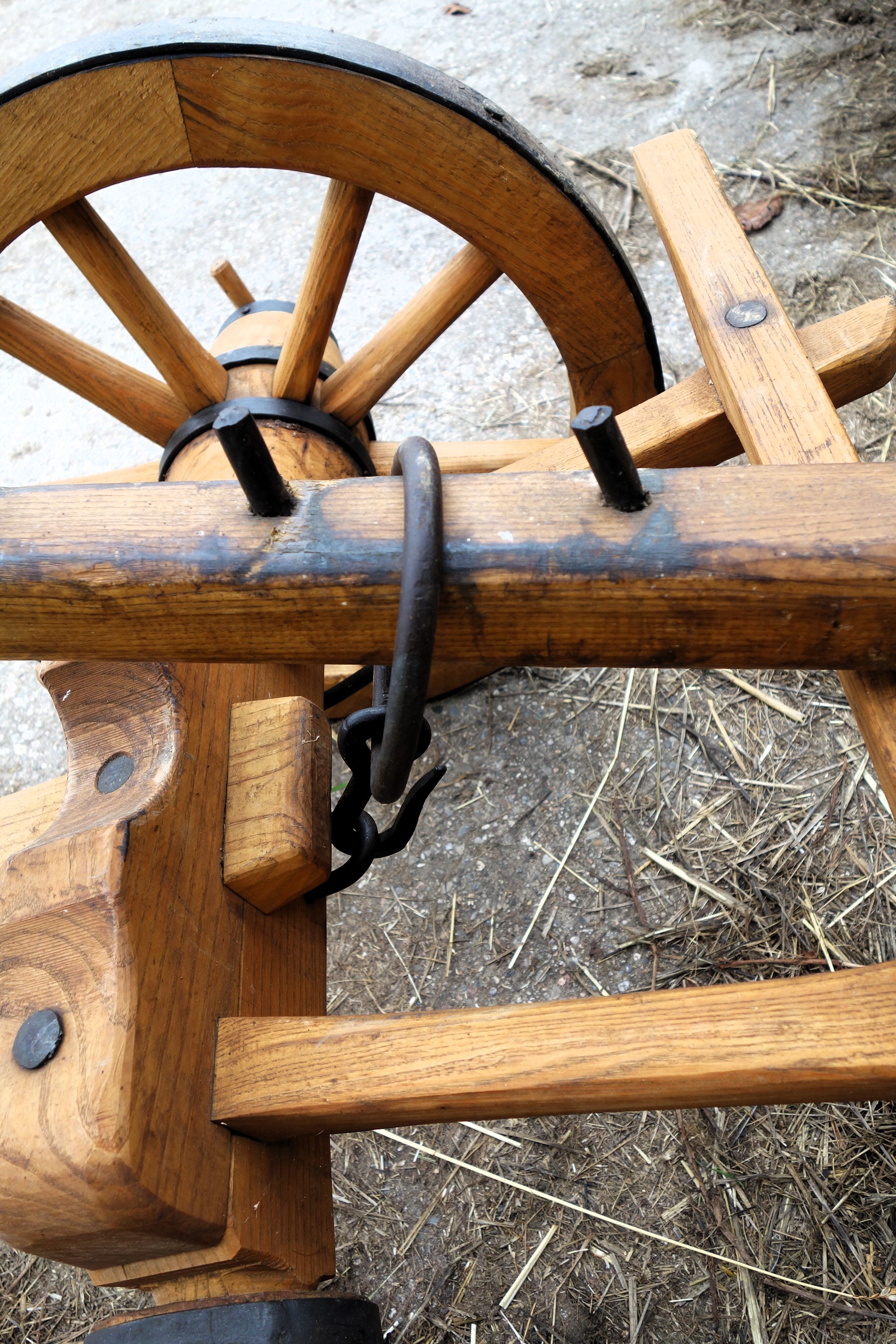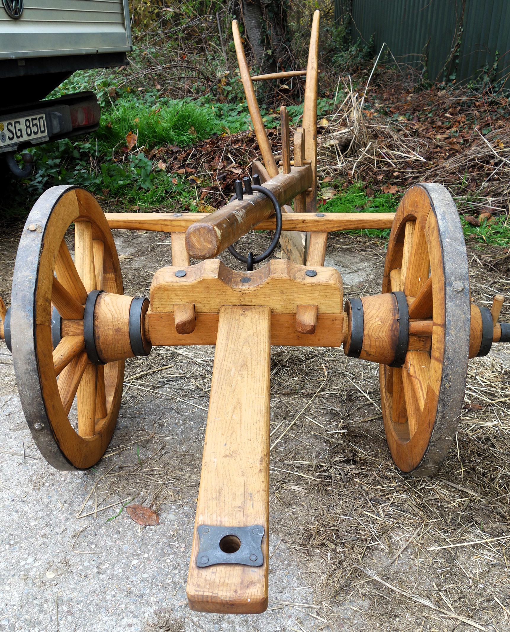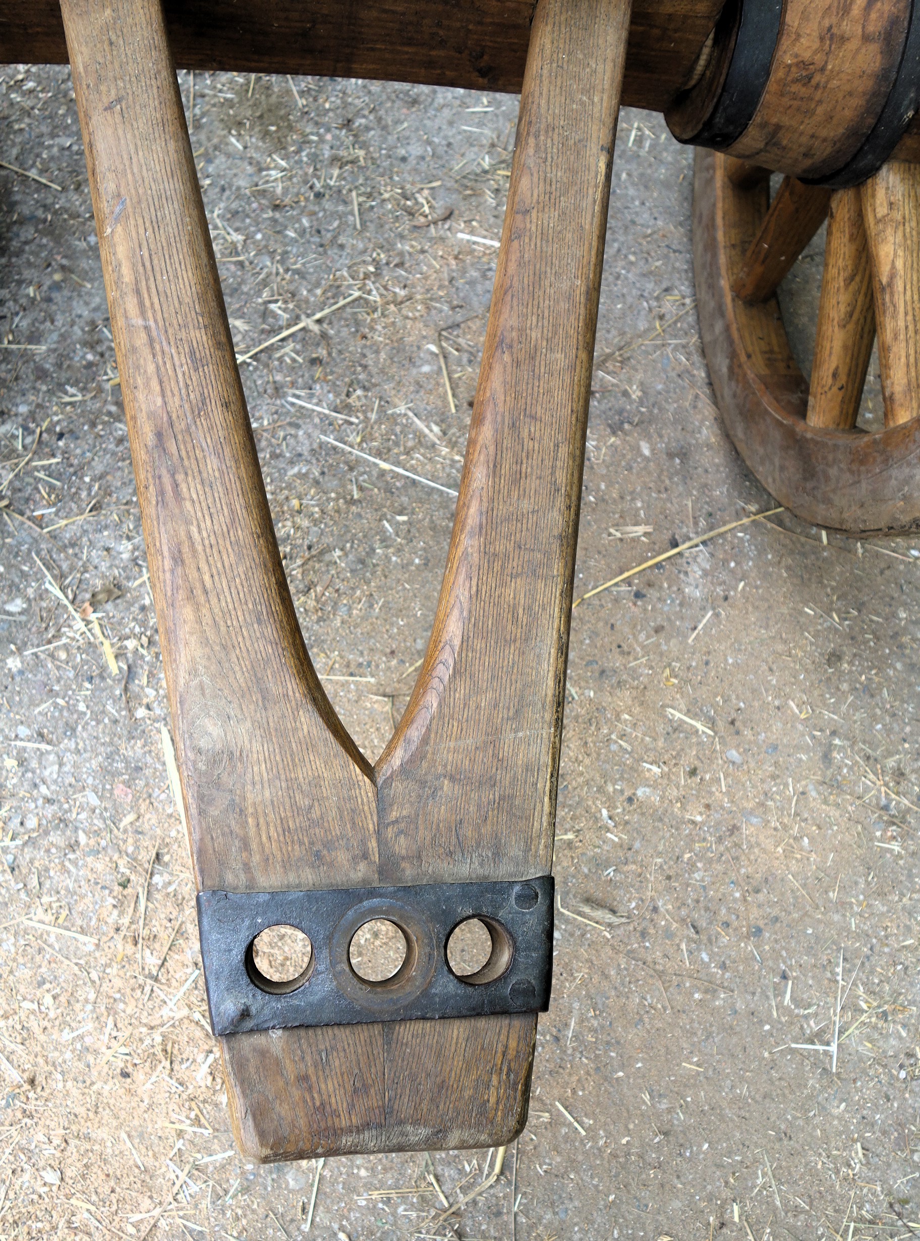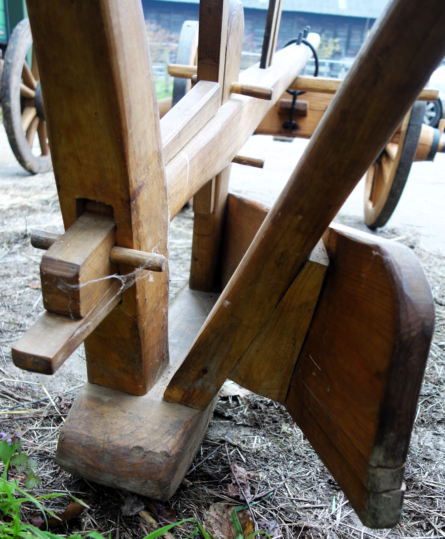 Dieser hier vorgestellte Krümelpflug wurde vom Freilichtlabor Lauresham nach alten Vorlagen rekonstruiert. Aus einem simplen Hakenpflug weiterentwickelt wurde hier die hölzerne, symmetrische Pflugspitze, die den Boden nur anhebt, krümelt und nicht wendet, schon mit einer Eisenplatte verstärkt. Ferner wurde ein Messersech eingebaut und ein Pflugkarren dazu genommen, letzteres um die Händelbarkeit des Gerätes deutlich zu erleichtern. Fast modern das Teil...