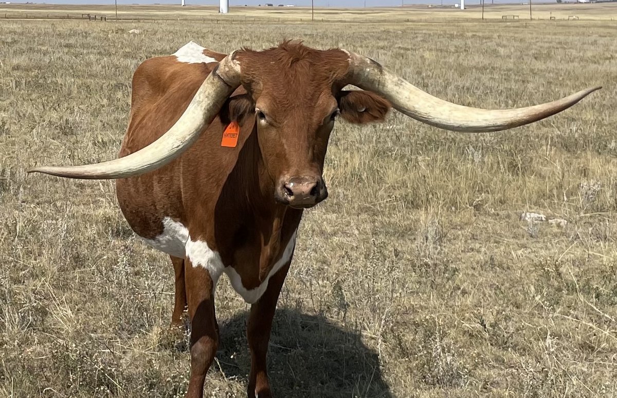 This cow had both tips freeze and die her first winter. The horn continued to grow, but the trauma caused a fake shape instead of the original genetic shape and direction. -