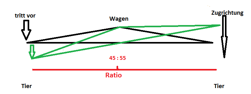 Was aber passiert, wenn der Zugpunkt der Last hinter den beiden Ansatzstellen für den Zug der Tiere liegt?